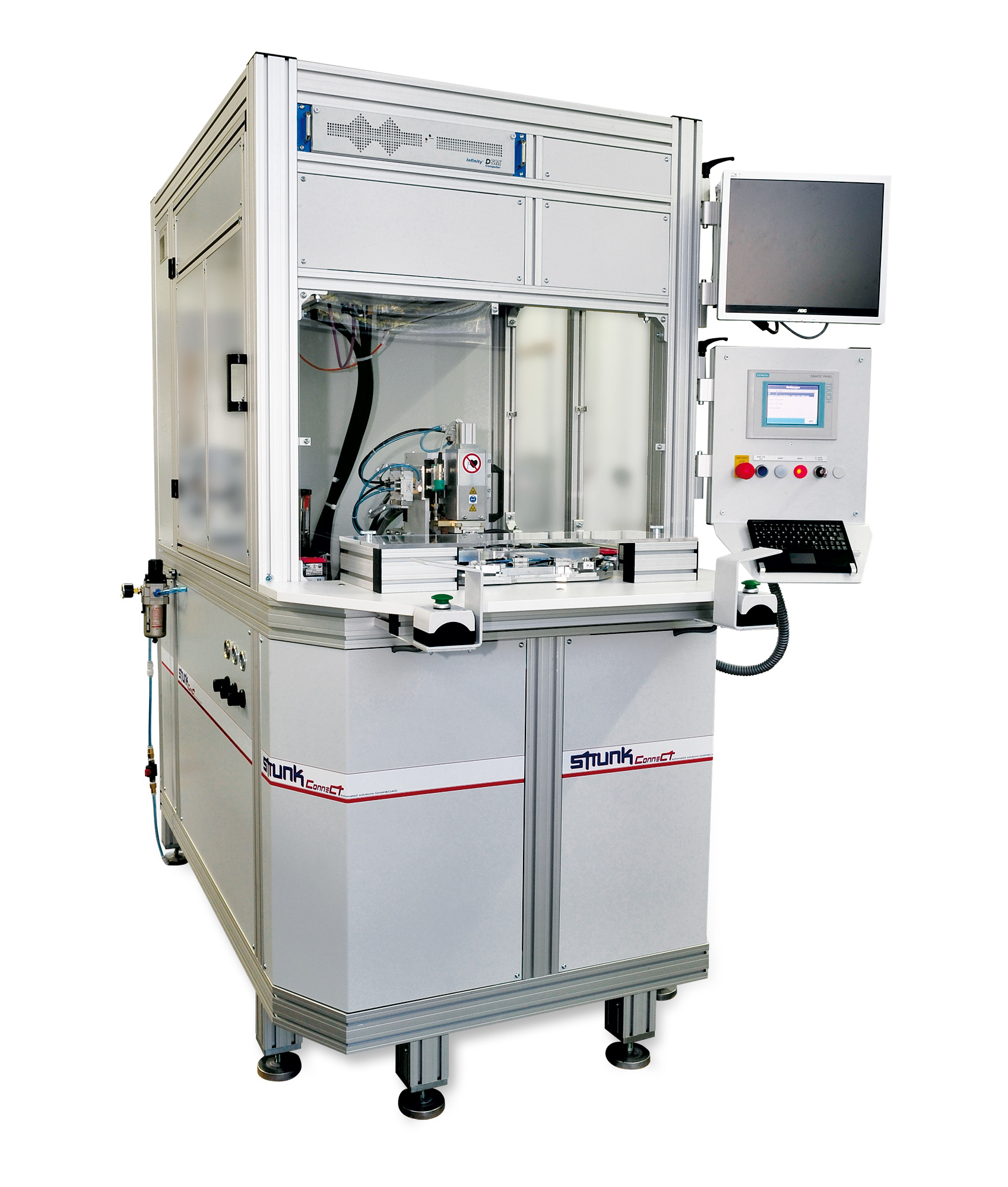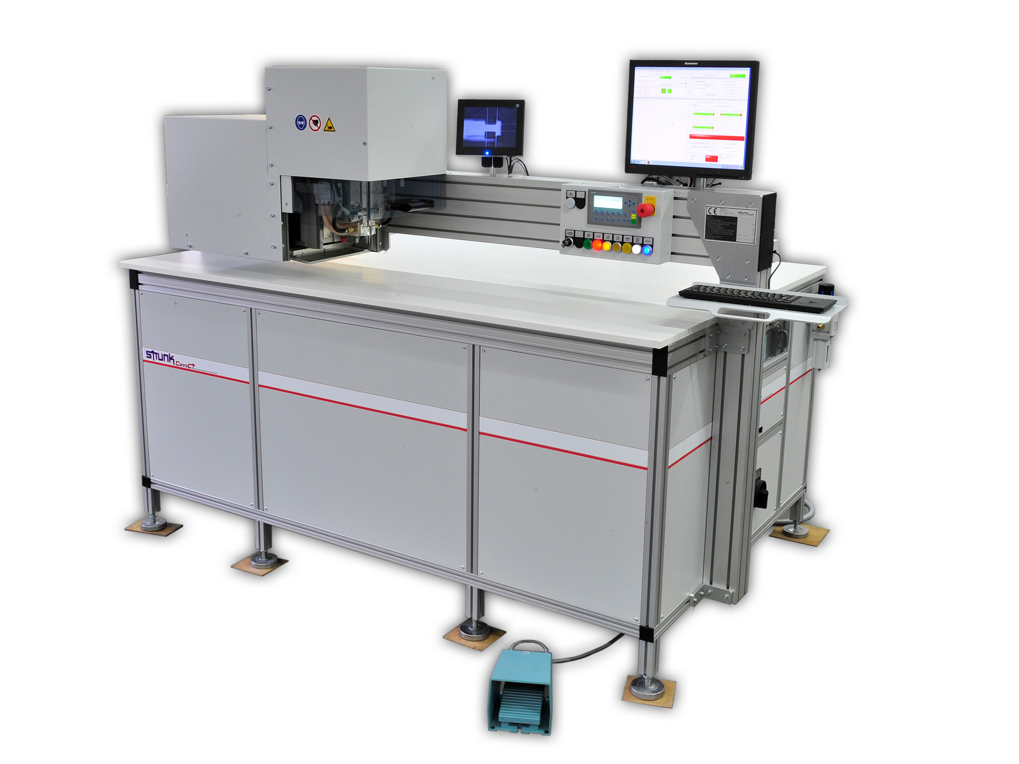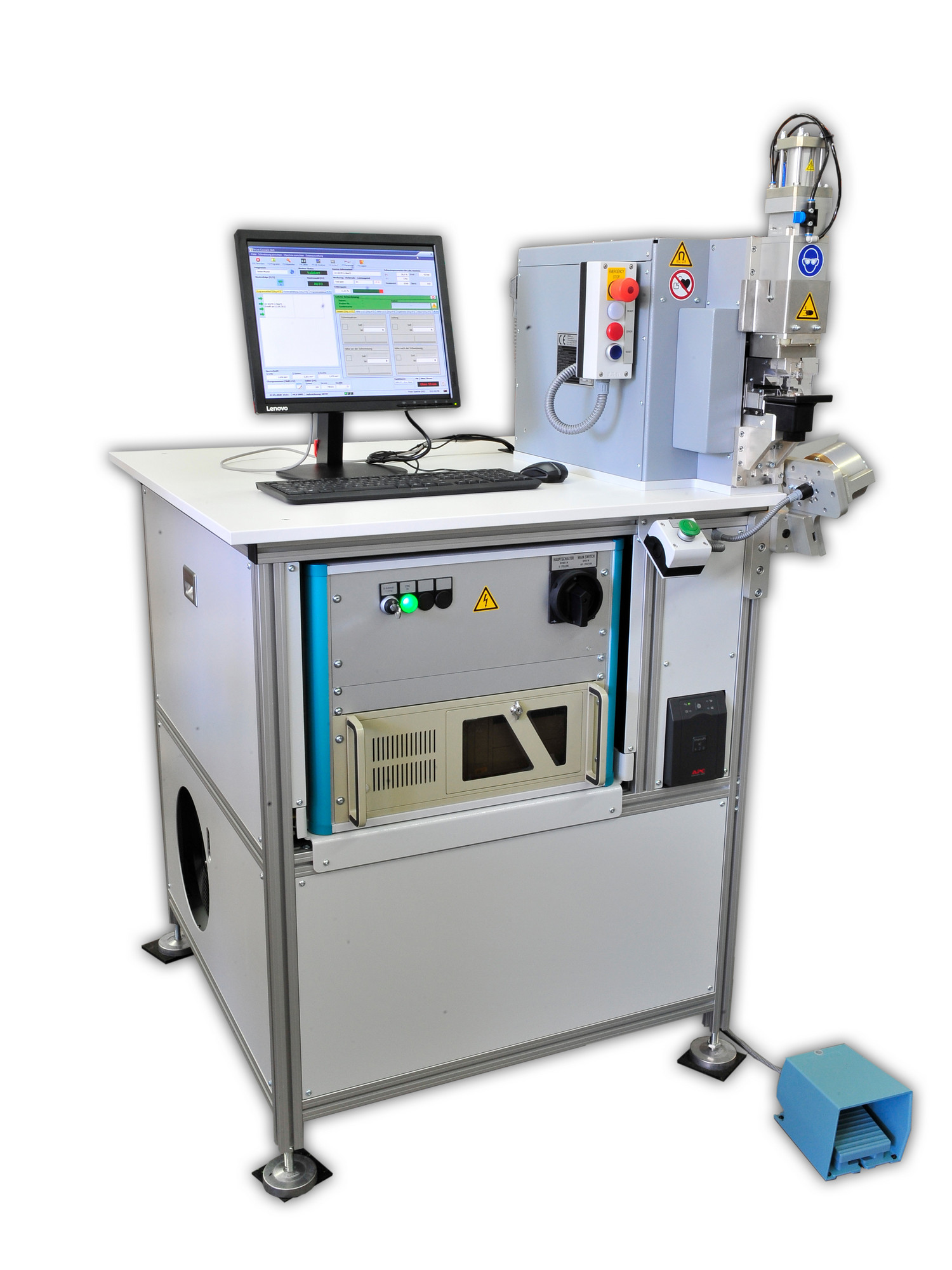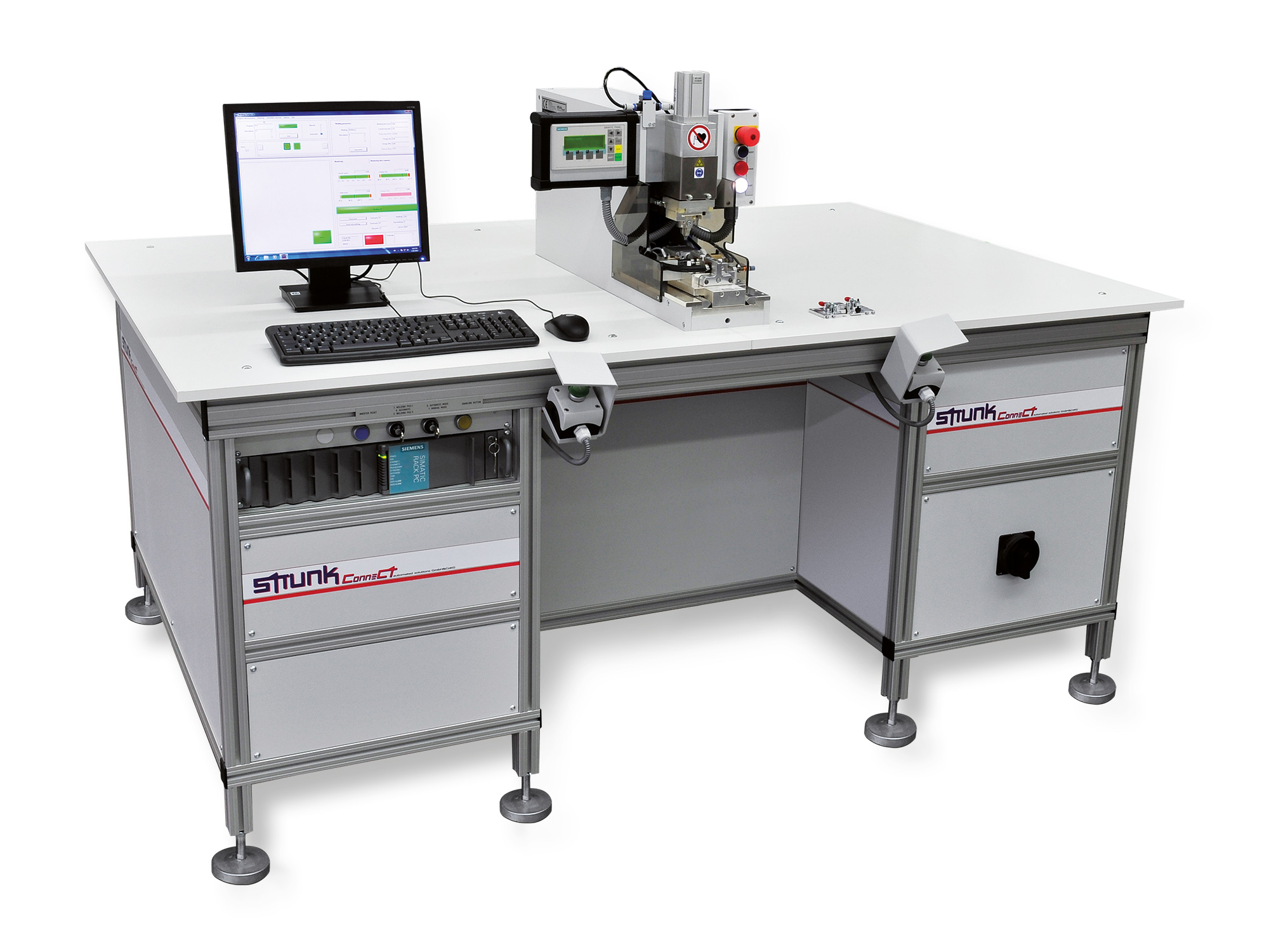 The MSK micro welding head can be built as a manual work station or integrated in a semi-automatic system with a tool change system and quick couplings with an integrated multi-point welding tool and driven ceramics.