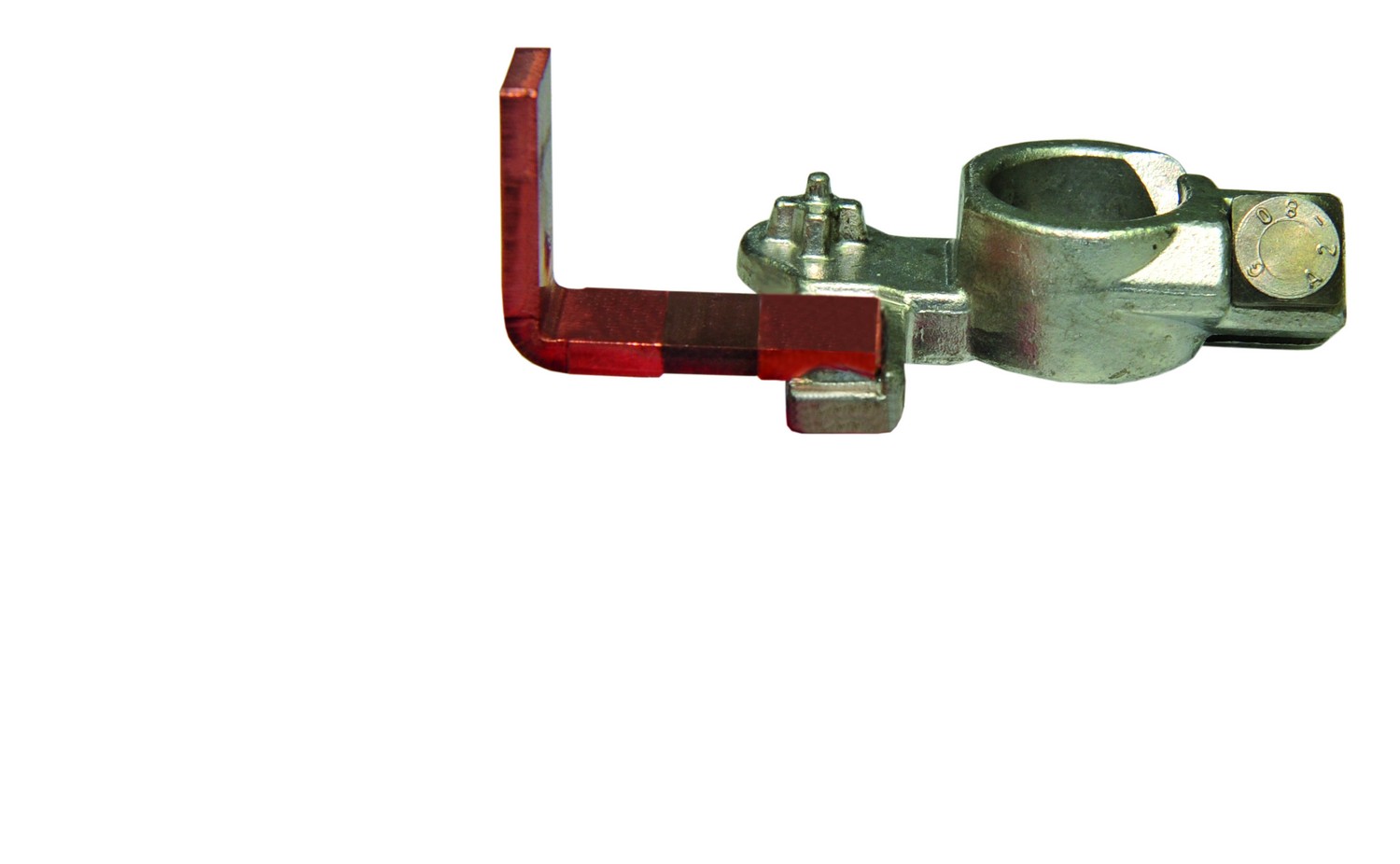 SchweiĂźen von Batterieklemmen auf Cu Schienen. Applikation Sicherungsbox.