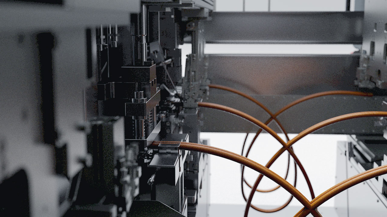 Flexible semiautomatische Schweißzelle mit Transfer für das Kompaktieren unter Hartlot und Schweißen der Kompaktierten Leitung auf einen HV-Kontakt. Durch die Kompaktierung unter Hartlot und dem automatischen Übersetzen der Kompaktierten Leitung wir die Schweißung auf das Rohr ermöglicht, ohne dieses zu deformieren.