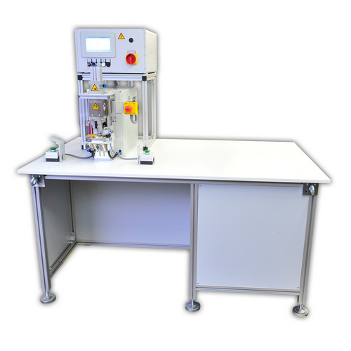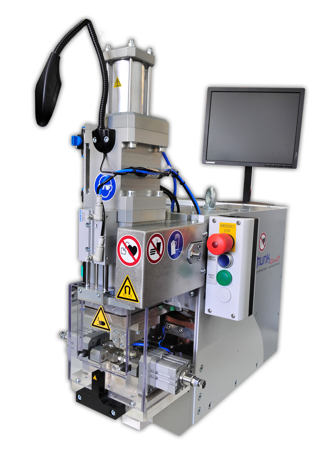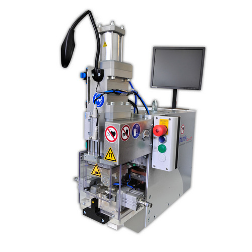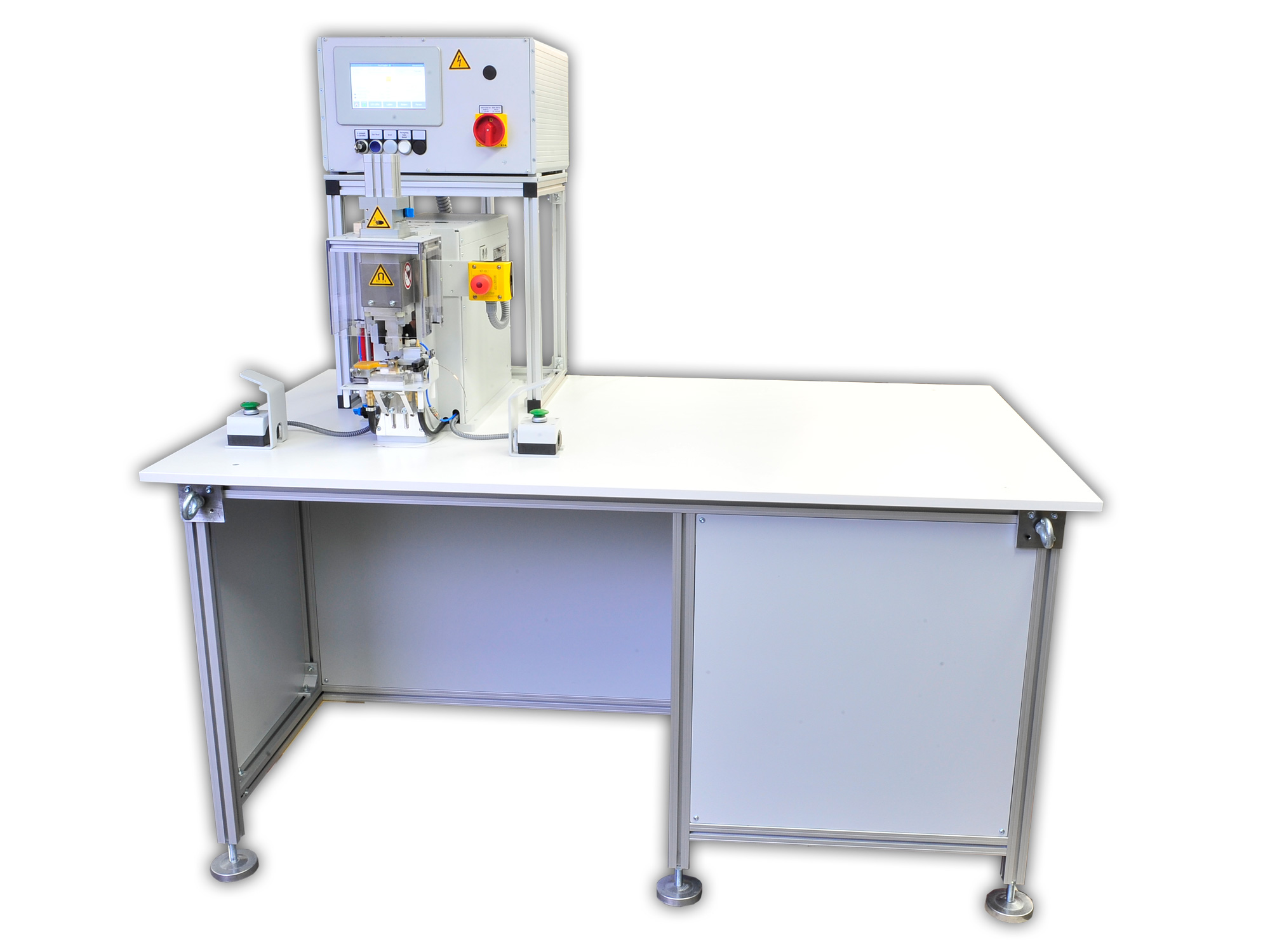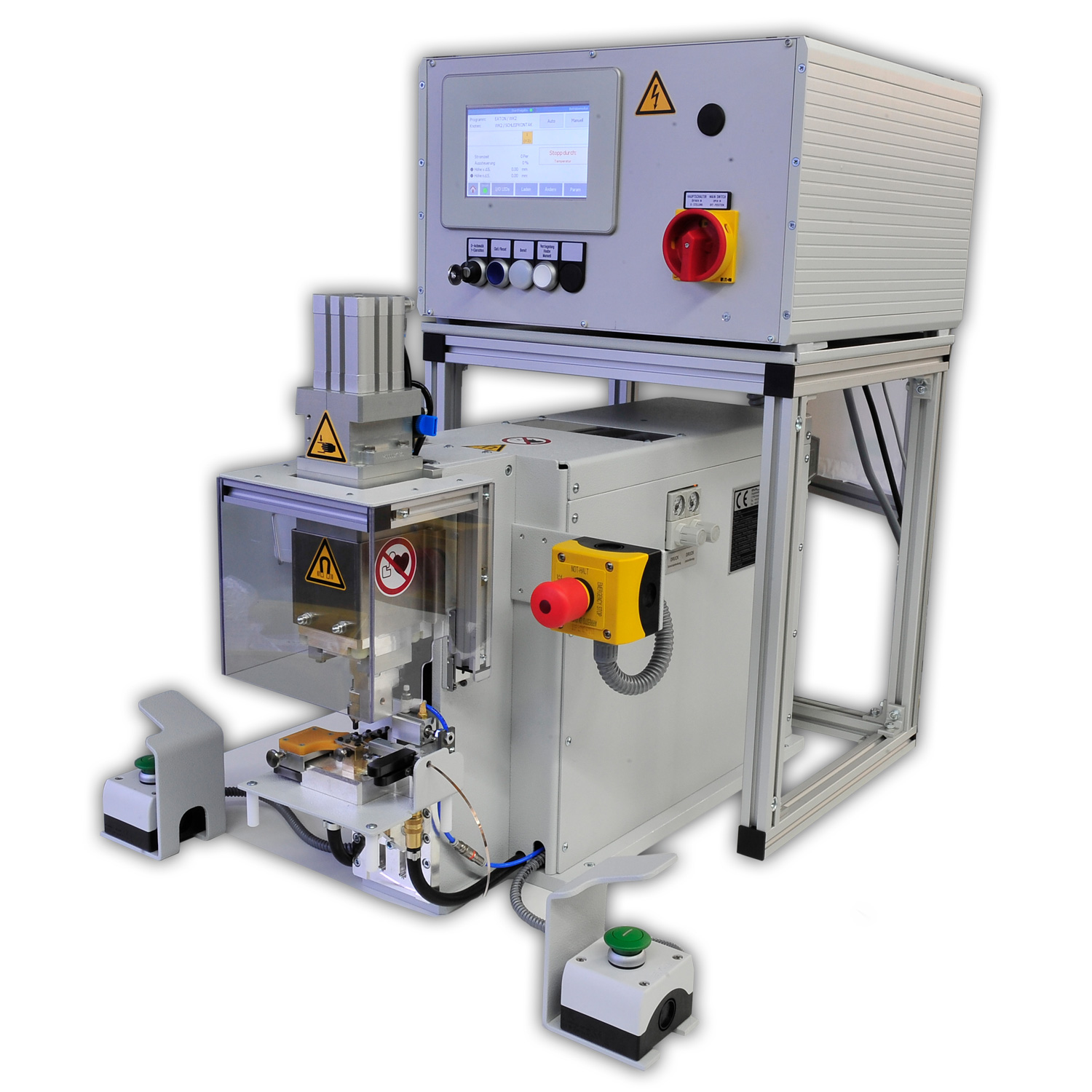 Semiautomat servomotorischem Versatzkopf fĂĽr die VerbindungsscshweiĂźung von Einzeladern als DirektschweiĂźung unter Keramiken incl. Isolationscrimp zur Masseverteilung.