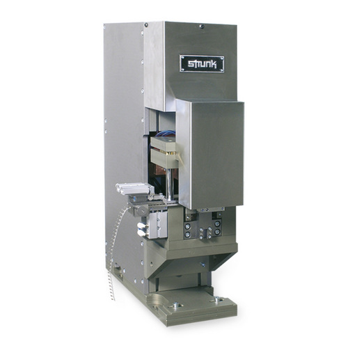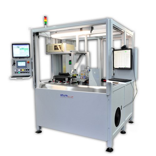 Semitauotmatische SchweiĂźanlage fĂĽr die BuckelschweiĂźung von Leadframes. Einsatz Powermodule fĂĽr elektrische Lenkungssysteme